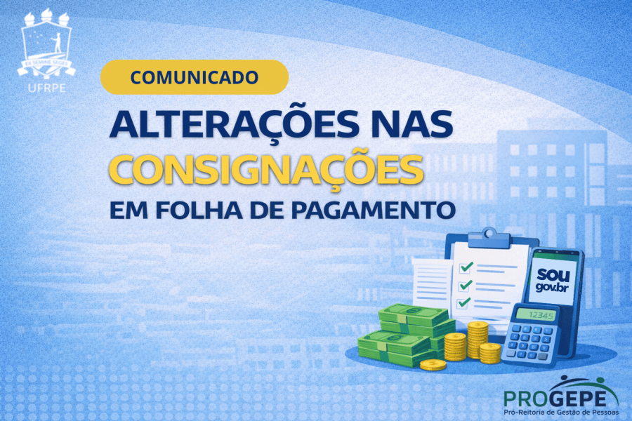 A Pró-Reitoria de Gestão de Pessoas (PROGEPE) informa aos servidores, aposentados e pensionistas sobre as alterações operacionais relacionadas às consignações em folha de pagamento, conforme estabelecido na Portaria MGI nº 984, de 19 de fevereiro de 2026, divulgada por meio do Comunica nº 566422 .