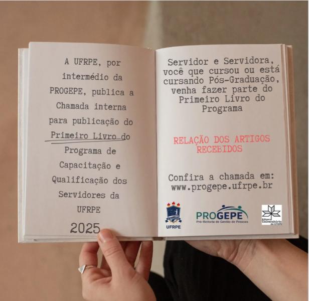 A Universidade Federal Rural de Pernambuco, por intermédio da Pró-Reitoria de Gestão de Pessoas (PROGEPE), divulga chamada interna para publicação do Primeiro Livro do Programa de Capacitação e Qualificação dos Servidores da Universidade Federal Rural de Pernambuco.